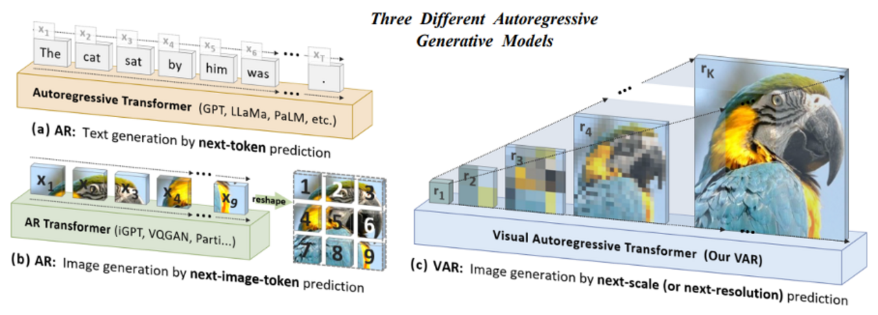 Dieser Ansatz wurde in der Forschung bereits früher erprobt, etwa in OpenAIs eigenen Arbeiten zur Bildcodierung mit Googles Parti-Modell2022oder ByteDances VAR 2024. Die Herausforderung: Autoregressive Bildmodelle galten lange als zu langsam oder zu qualitativ schwach, um mit Diffusionsmodellen mitzuhalten. Doch GPT-4o scheint hier einen Durchbruch geschafft zu haben – mit beeindruckender Bildqualität, stilistischer Vielfalt und semantischer Präzision. Wahrscheinlich basiert dieser Fortschritt auf Ansätzen aus dem Visual Autoregressive Modeling (VAR). Anders als klassische autoregressive Modelle generiert VAR Bilder nicht strikt Token für Token, sondern nutzt eine hierarchische Struktur: Es beginnt mit einer groben Darstellung und verfeinert sie schrittweise. Dieser mehrskalige Aufbau orientiert sich an menschlicher Wahrnehmung und macht die Generierung effizienter.