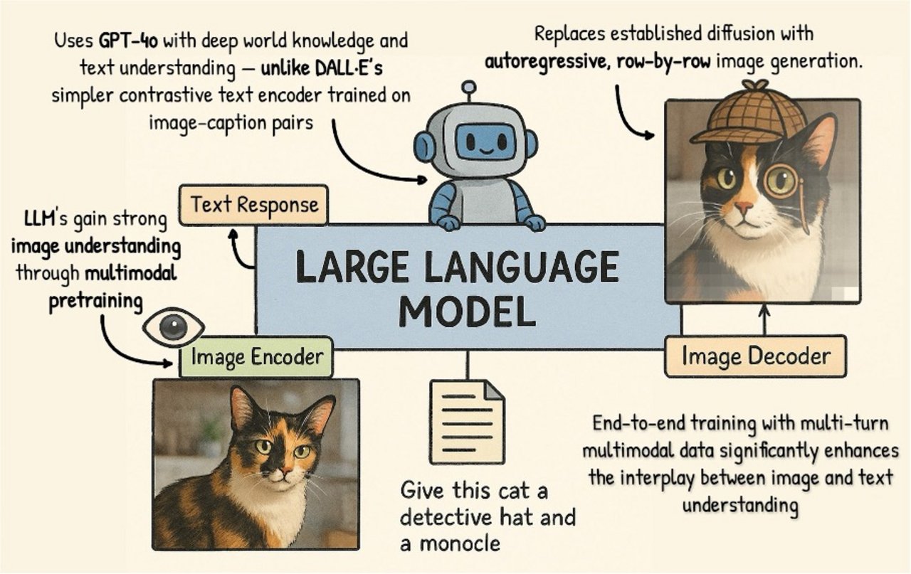 Obwohl DALL·E (und insbesondere DALL·E 2 und 3) beeindruckende Bilder liefern konnten, war das System modular aufgebaut – Sprache und Bildverständnis waren klar voneinander getrennt. Dadurch entstanden mehrere Schwachstellen:
