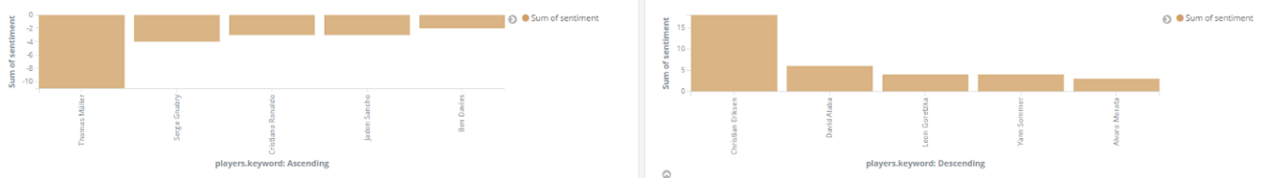 Unter den Spielern schließt sich der Kreis aller unserer Beobachtungen während der EM: Christian Eriksen wird wenig überraschend am meisten Sympathie entgegengebracht, während die negativen Reaktionen sich besonders auf Thomas Müller konzentrieren, offenbar der Spieler, der die deutsche Mannschaft in den Augen der Social Media Community repräsentiert.