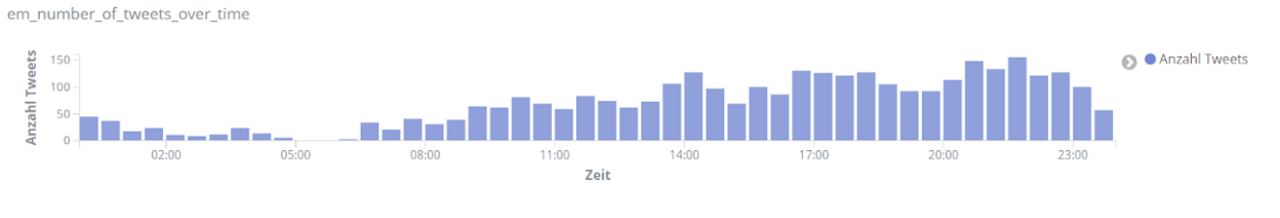 Klar erkennbar im Spiel zwischen Ungarn und Deutschland ist eine Verringerung der Social-Media-Aktivität während der Halbzeitpause. Höhepunkte liegen dagegen kurz nach den beiden Toren in der 66. und 68. Minute sowie beim Abschluss des Spiels, der für Deutschland das Zittern um ein Weiterkommen ins Achtelfinale beendete.