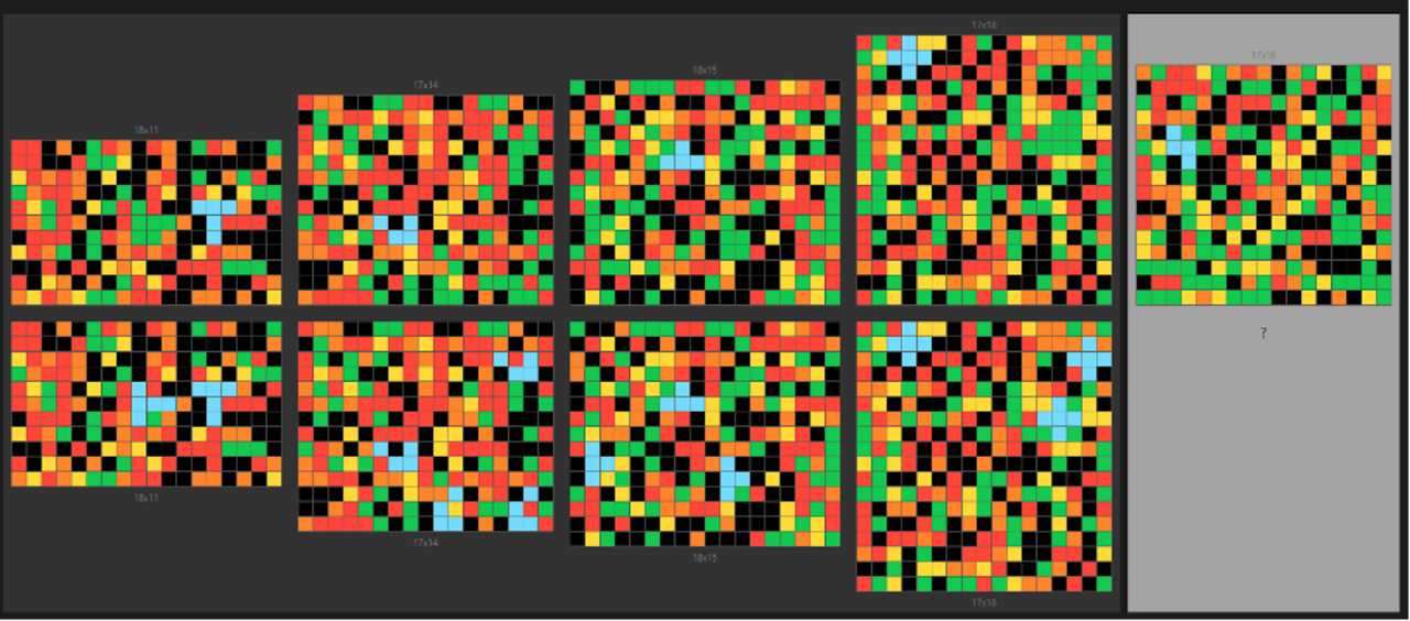 Ein anschauliches Beispiel dafür ist die zuvor beschriebene Aufgabe mit den Tetris-ähnlichen Objekten. In den Demonstrationen wurde gezeigt, dass diese Objekte gedreht werden können, um in grüne Flächen zu passen. Im Testgitter gab es jedoch eine grüne Fläche, in die das gesuchte Objekt nur mithilfe einer Spiegelung eingefügt werden konnte – eine Transformation, die in den Beispielen nicht explizit demonstriert wurde. Solche Mehrdeutigkeiten stellen selbst für Menschen eine Herausforderung dar. Als ich mit Kollegen über die Aufgabe sprach, argumentierte ich, dass wir davon ausgehen müssen, dass Spiegelung keine erlaubte Operation ist, da sie in den Beispielen nicht beobachtet wurde. Vielleicht war ich sogar von der Ähnlichkeit der Objekte zu Tetris beeinflusst, wo Spiegelung nicht erlaubt ist. Zu unserer Überraschung wurde unsere Lösung als falsch eingestuft: Die Autoren der Aufgabe hatten Spiegelung den möglichen Transformation beigefügt.