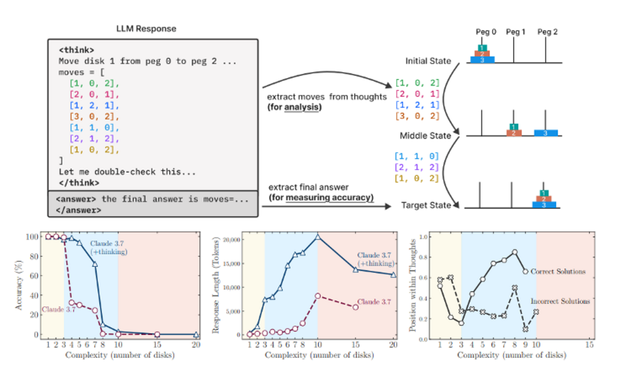Ein zentraler Beitrag des Apple-Papers „The Illusion of Thinking“ war der Vorschlag, Reasoning-Traces anhand kontrollierbarer, algorithmischer Aufgaben zu untersuchen. Ziel war es, nicht nur das Endergebnis, sondern auch die Zwischenschritte des Modells zu analysieren.