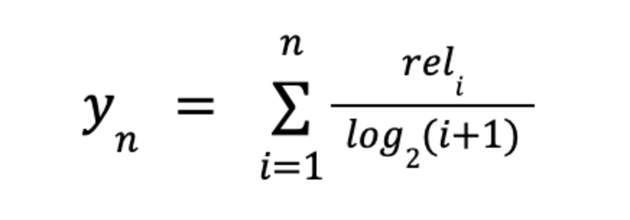An dieser Stelle kommt der Discounted Cumulative Gain (DCG) ins Spiel. Hier erscheint die Position, an der das Suchergebnis steht, wieder als Teil des Nenners eines Quotienten. Im Gegensatz zur Average Precision wird hier aber außerdem logarithmiert: